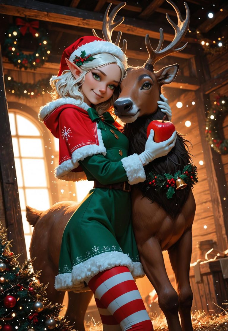精灵少女与驯鹿的圣诞谷仓奇遇