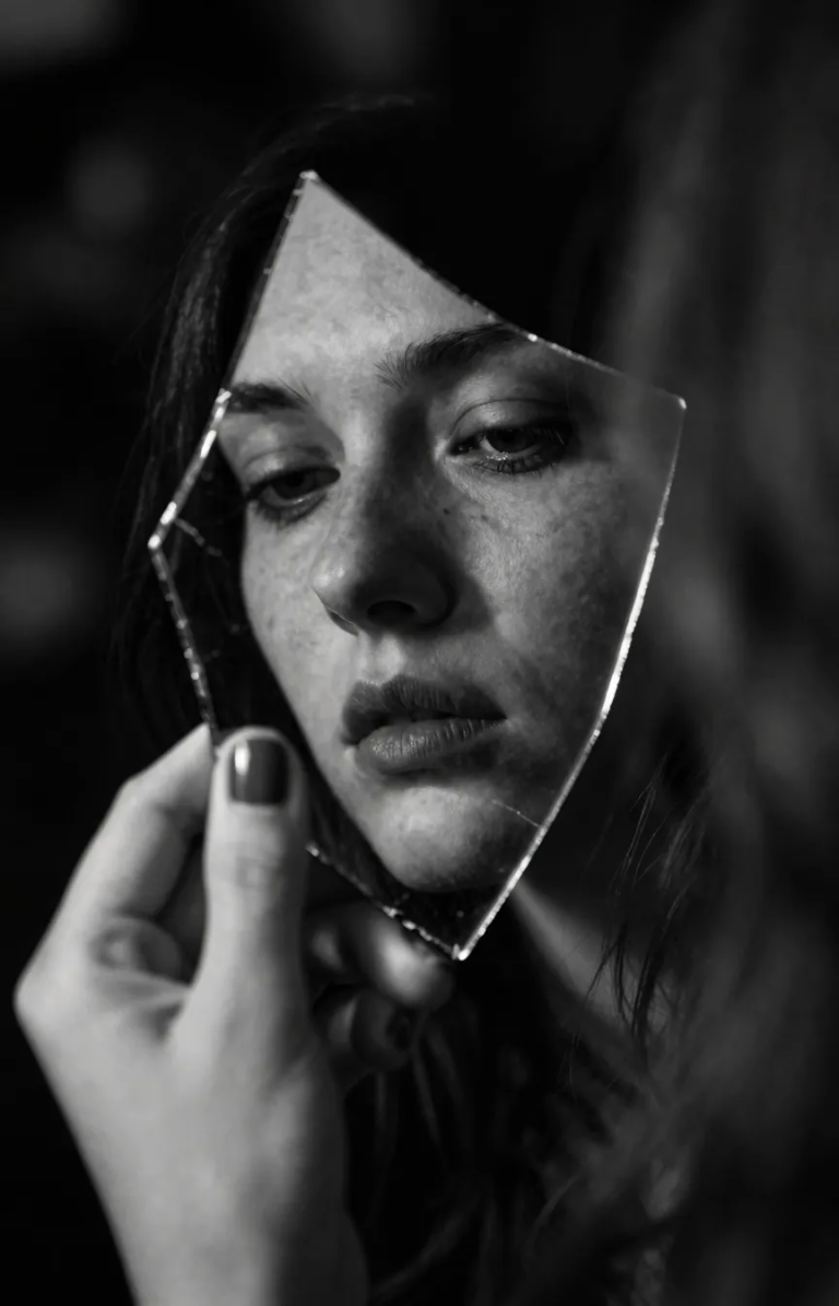 镜碎心影:忧郁凝视下的脆弱瞬间